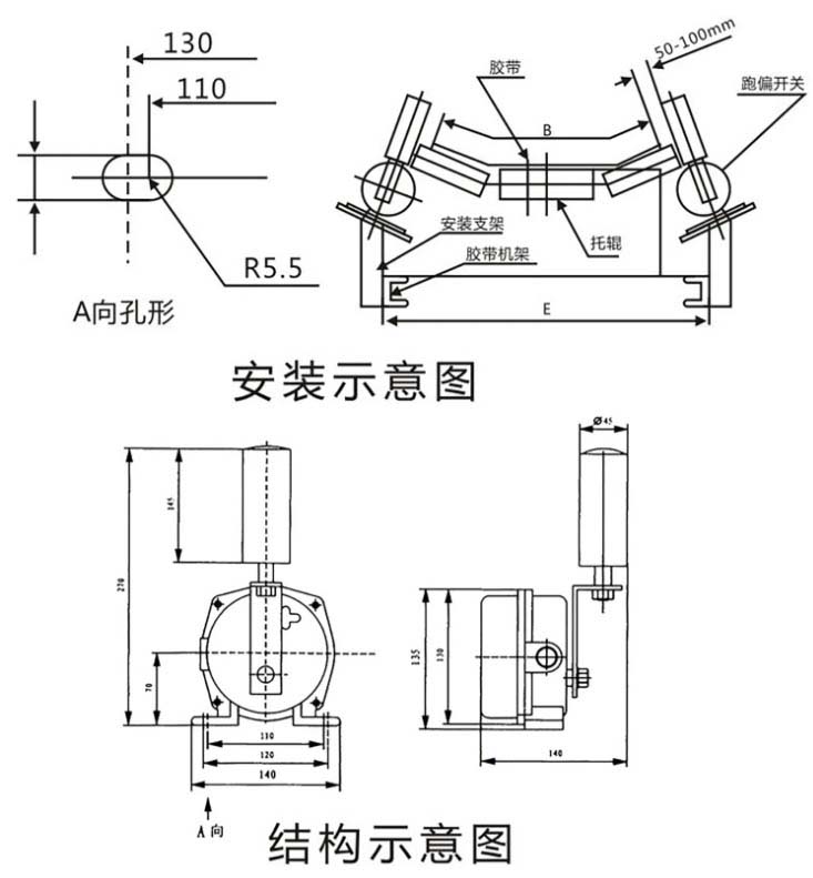 4.每100m膠帶可安裝跑偏開關(guān)3對(6臺)